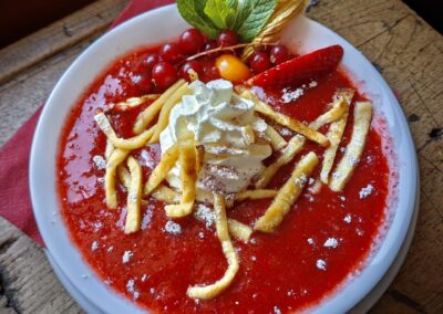 Um jedem unserer Gäste den besten Besuch zu ermöglichen bieten wir auch vegane und vegetarische Gerichte an, die natürlich auch einen Teil altmärkische Kultur enthalten. So sind beispielweise hausgemachte Brotaufstriche wie "Bolle-Birne" oder "Gewürzschmier" vegan und super lecker. Aber auch vegane und vegetarische Hauptgerichte stehen auf unserer Speisekarte.