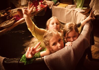 Üppige Eindeckung der Tische, reichlich Gesöff und Fraß, Musik von Sackpfeife, Laute und Trommel, oder ein Bad im Badezuber lassen euch die Sorgen des Alltags vergessen.